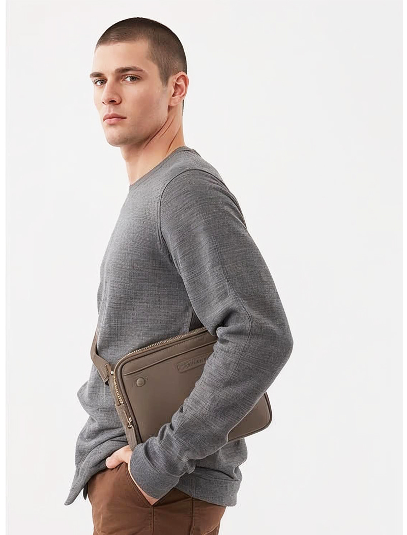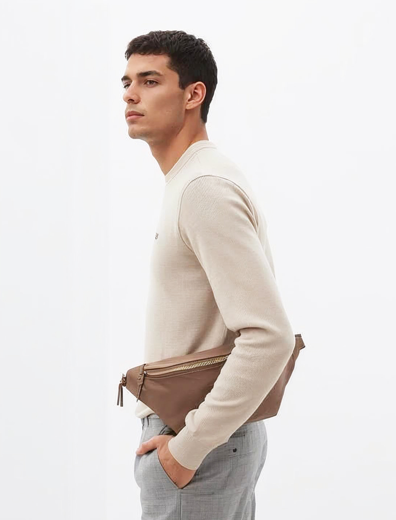 Taupe Leather Belt Bag for Men