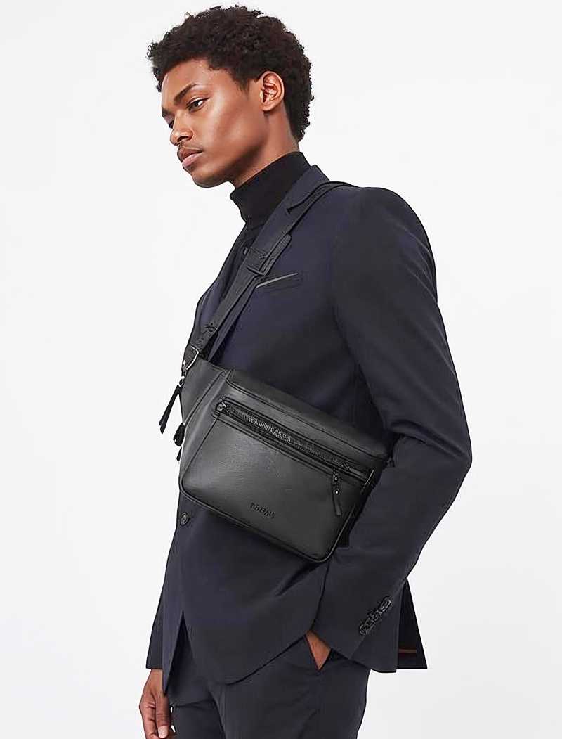 Black Modern Leather Belt Bag for Men