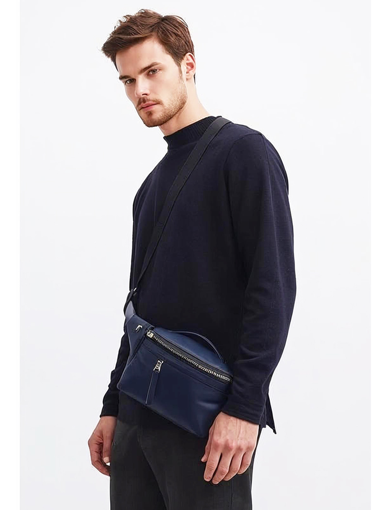Dark Blue Modern Leather Belt Bag for Men