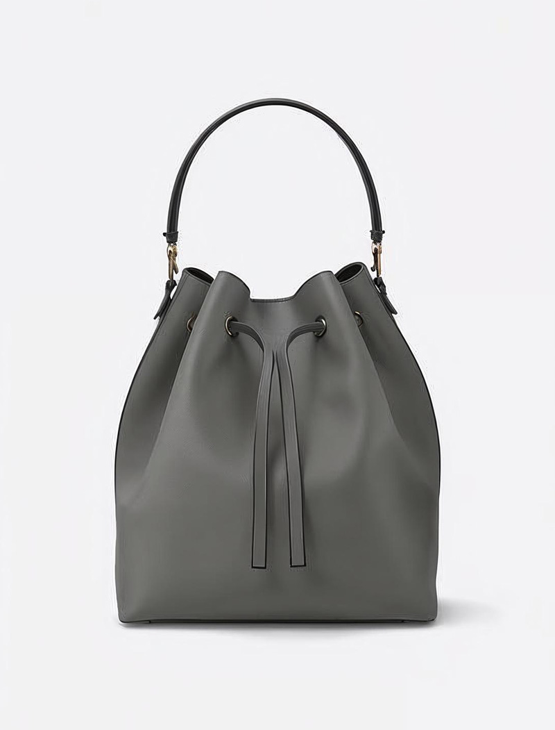 Grey Modern Leather Bucket Bag